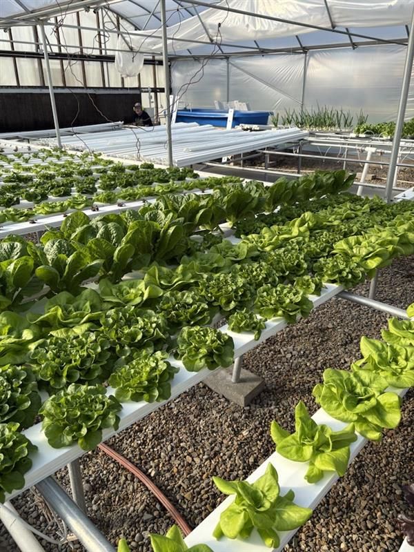 We grow a wide variety of leafy greens and herbs, including butter bibb, romaine, oak leaf, red and green lettuce, basil, cilantro, kale, and spinach. Much of this produce is featured in the farm-to-table dishes at Grande Café & Roastery, located just half a mile from our greenhouse, ensuring the freshest flavors straight from our farm to your plate.